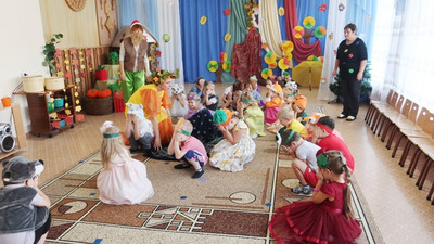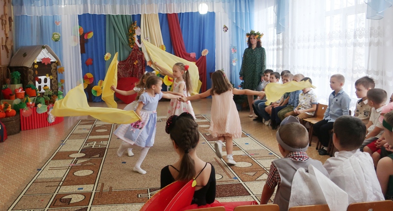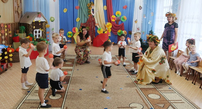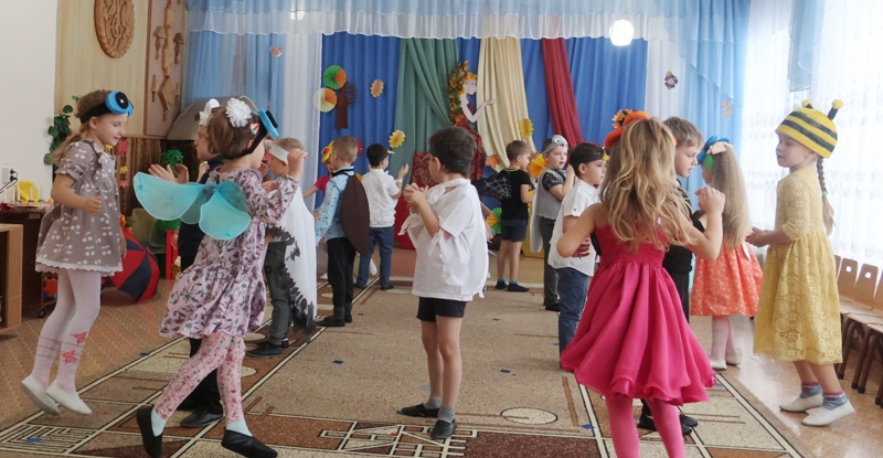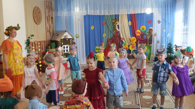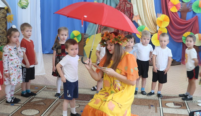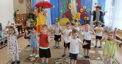 Подготовка к мероприятию началась задолго до его начала. Дети с воспитателями и музыкальным руководителем разучивали стихи, танцы и песни про Осень. И вот долгожданный день наступил. В украшенный по – осеннему зал пришли дети. Интересные, захватывающие сценарии праздника перенесли детей в осеннюю сказку. Главными героями праздника, конечно же, были дошколята. К ним приходила в гости не только красавица Осень, но и другие сказочные персонажи. С ними ребята пели, танцевали и играли. Гостем младших групп «Затейники» и «Пчелки» был «Дядюшка АУ», который с детьми проводил веселые лесные игры. В среднюю группу «Звездочки» приходили Осень и весёлый лесной Гном. Дети старшей группы «Смешарики» получили приглашение на осеннюю ярмарку от задорного скомороха. Дети подготовительных групп показали представление по басне И. Крылова «Стрекоза и муравей». Все водили хоровод, пели песенки об Осени, играли в веселые игры, танцевали. А самым ярким и запоминающимся эпизодом во всех утренниках стал сюрпризный момент: корзина с наливными яблоками и сладкими угощениями для всех ребят – подарок Осени! Праздник в детском саду – это всегда звонкий смех детей, море улыбок и веселья. Утренники получились яркими, веселыми, увлекательными. Воспитанники получили много позитивных эмоций.